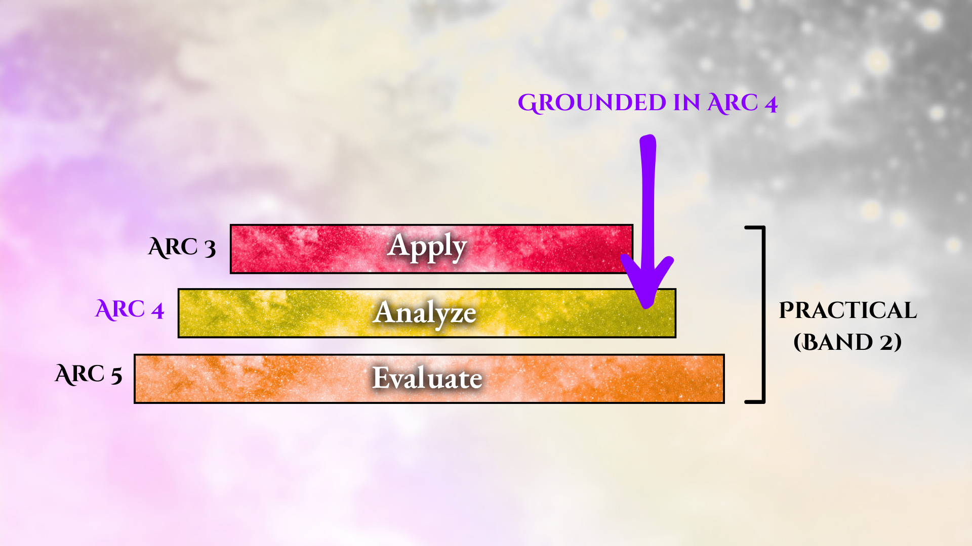 Arcs represent different ways of learning, studying, and knowing inside of Bands: