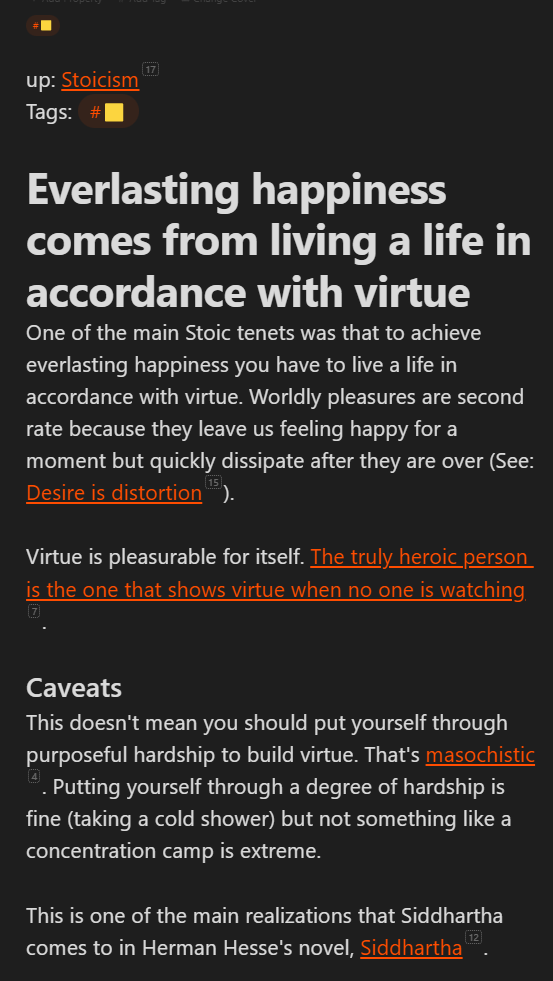- Make Growing Your Zettelkasten a Habit: One of the highest leverage habits I instilled to work on my Zettelkasten was to make it a daily quest to process and grow my notes for 15 minutes a day. I usually do this in the morning. This 15 minutes doesn't seem long, but over the long run, it compounds to insane degrees.