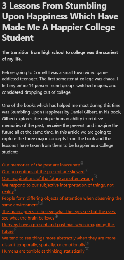 - 📖Book - Happiness Beyond Thought by Gary Weber: This book gives clear methods on how we can use breathing, meditation, yoga, and chanting to quiet the endless storm of thoughts coming into our minds. It heavily influenced the book, The Victorious Mind, which I wrote a previous newsletter on, and there's a reason it did.