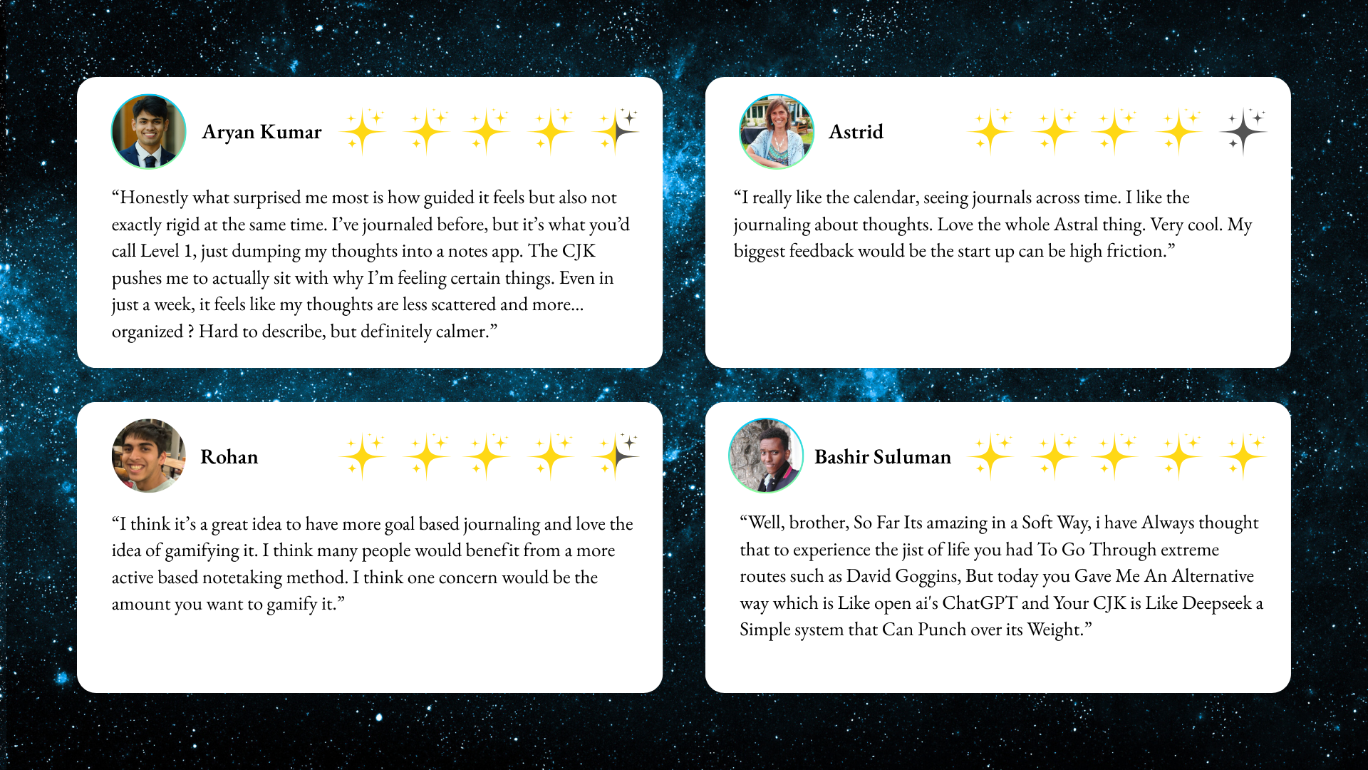 The CJK is shaped by 50+ interviews with Elite College Freshmen across academic backgrounds